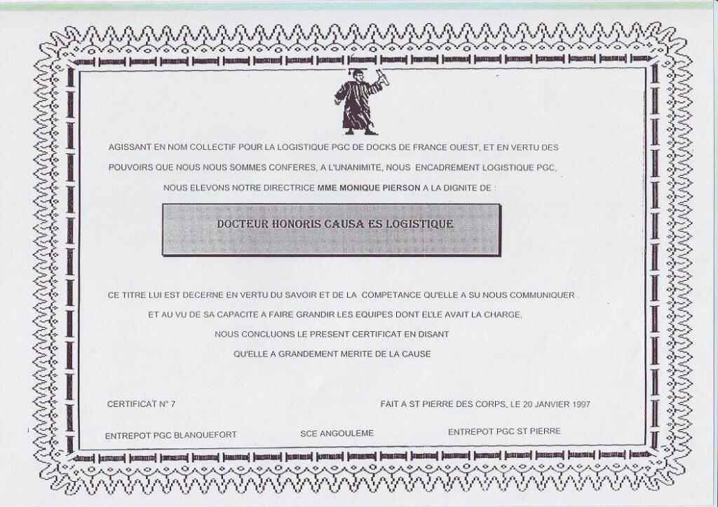 Et lors de mon départ de la société, les équipes que je supervisais m’ont remis un « diplôme » :